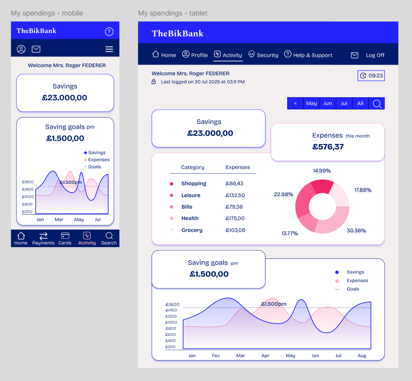 • ‘My spending’ screen: The screen about savings goals, spending over time, etc., with some data visualisation